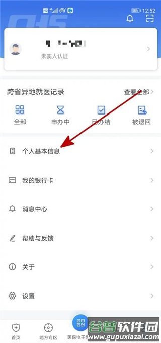 在手机中打开国家医保服务平台App,点击界面右下角的“我的”。