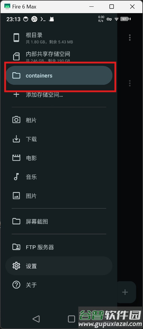 授权后将出现名为containers的入口,之后点击即可访问软件文件。