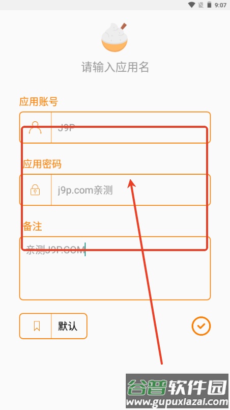 2、在新建页面中,依次填写密码所属项目名称、具体的密码字符以及相关备注信息;