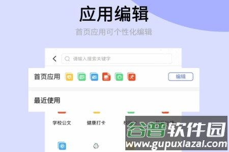 1、应用中心:各类功能应用分类清晰,方便快速查找使用;