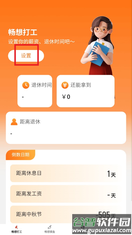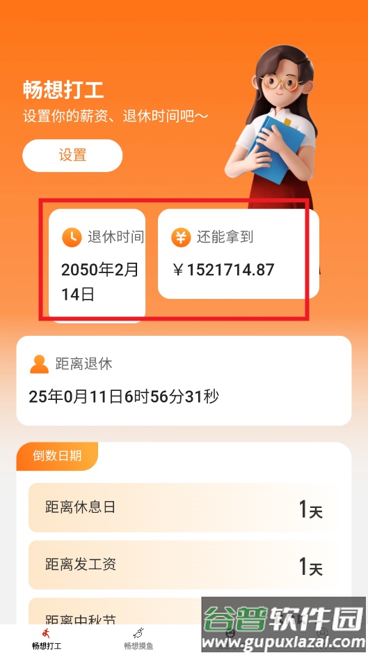即可查看退休时间、预估金额、距离退休剩余天数,以及休息日、发薪日、中秋节的倒计时;
