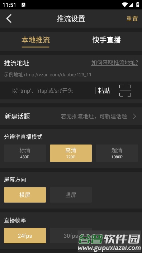 4、进入直播推流设置页面,根据需求调整相关参数;