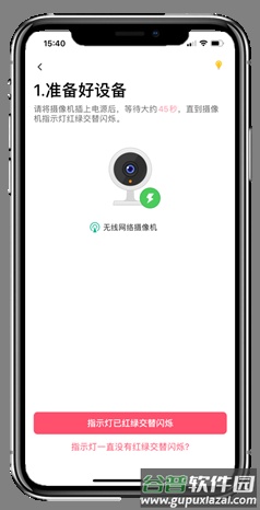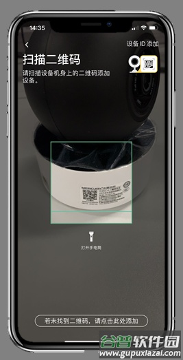 登录后,确认摄像机处于出厂状态且指示灯红绿交替闪烁。点击设备界面右上角的“+”号,扫描机身上的二维码。