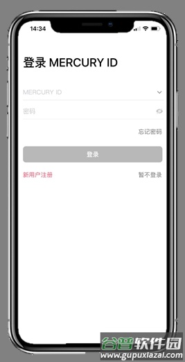 启动MERCURY安防应用,输入已有账号与密码完成登录。若无账户,可点击新用户注册并按指引创建。