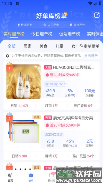 2、实时榜单查询:帮助淘客即时掌握市场热销商品与高性价比好物,以便根据趋势快速调整推广方向;