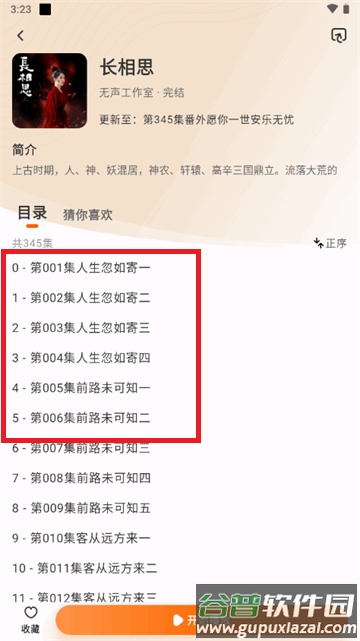 3、点击选中书籍,从目录中挑选具体章节开始收听。