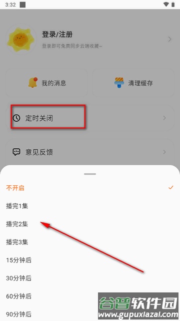 2、进入“我的”页面,打开设置界面,选择定时关闭选项,操作方法与上述一致。
