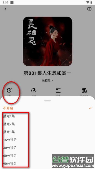1、在书籍播放页面,找到定时按钮,点击后根据个人需要选择合适的时间长度。