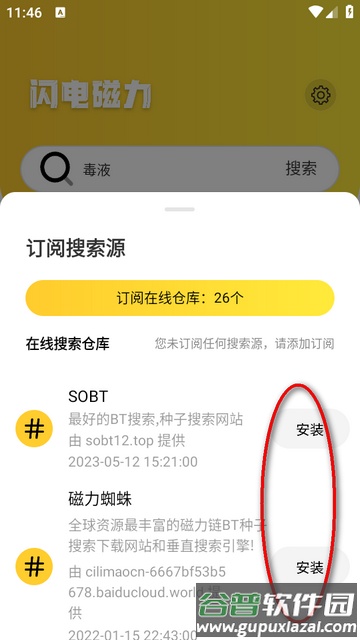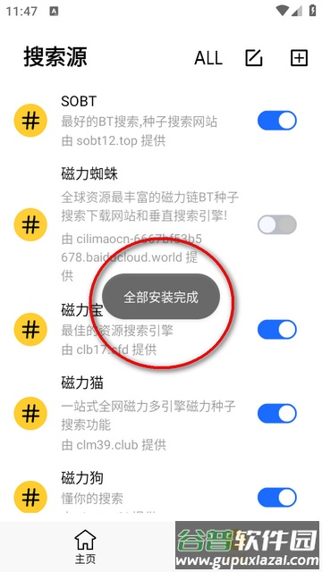 软件需订阅搜索源,首次打开时需进入订阅界面,将所有接口一次性订阅,直接点击ALL即可全部安装。