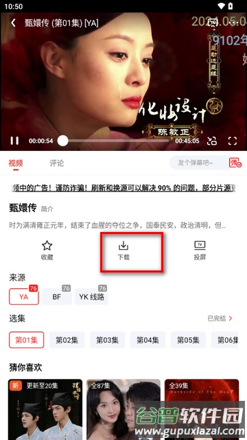 1、首先打开想要保存的影片,进入播放界面,点击画面下方的下载按钮。