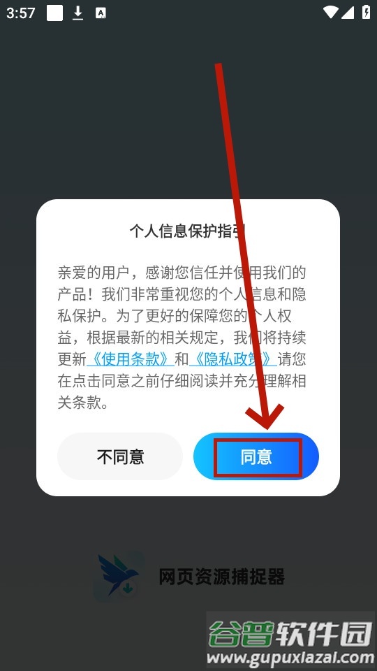 安装后启动应用,点击同意相关协议;
