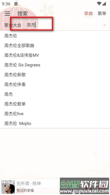 2、在搜索框输入歌曲或歌手关键词进行查找。