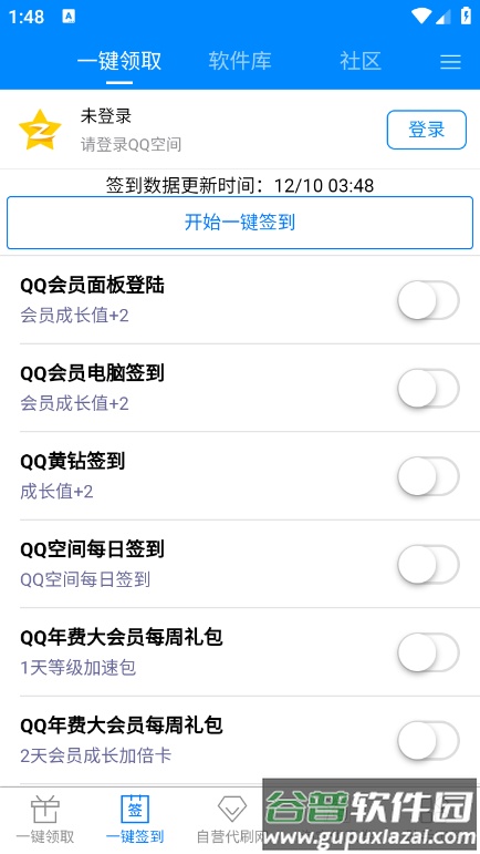 该功能支持批量签到操作,包括QQ会员及年费特权等多项福利。