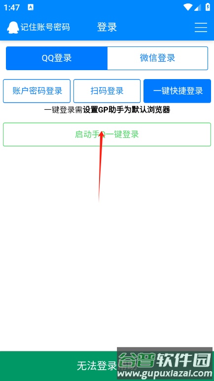 首次启动GP助手应用时,系统会提示用户进行登录操作。