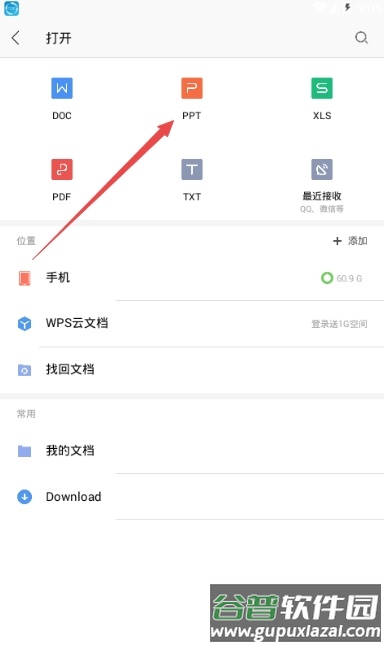 选择PPT选项,如需查看其他格式如DOC或PDF文件,点击对应图标即可;