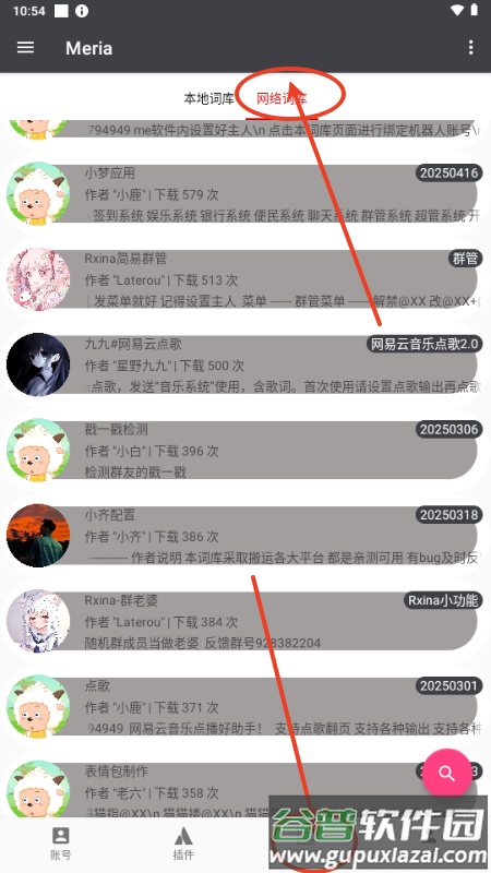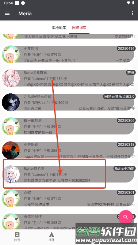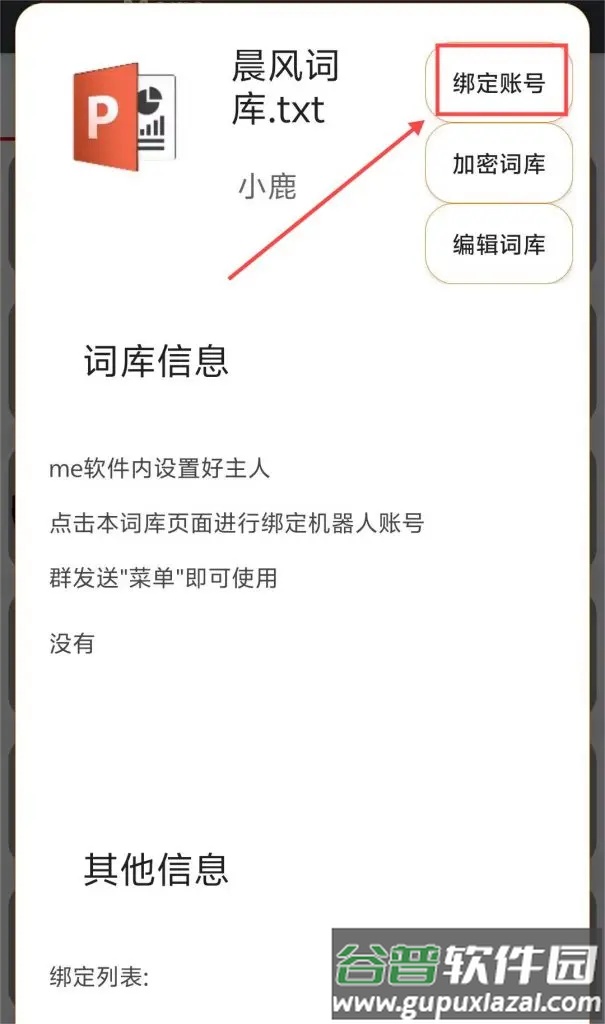 3.下载喜欢的词库后,返回本地词库界面,找到刚下载的词库文件,将其绑定到你的机器人账号即可生效。