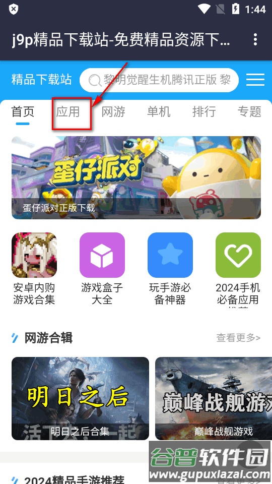 2、打开软件进入首页,可以看到应用、网游、单机、排行及专题等分类。