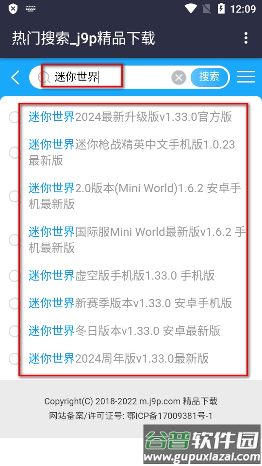 3、点击顶部的搜索框,输入游戏名称或关键词,即可看到相关版本列表。