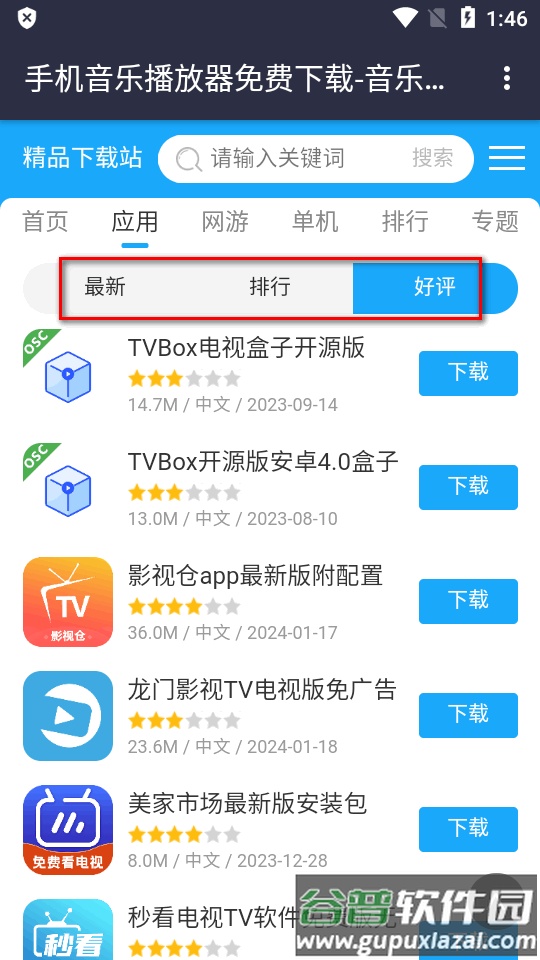 4、点击感兴趣的分类,可查看最新上架、热门排行与好评较多的软件。