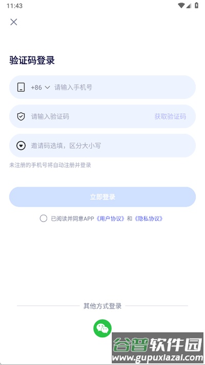 2、在登录界面输入您的手机号码,获取并填写验证码,即可完成登录过程。