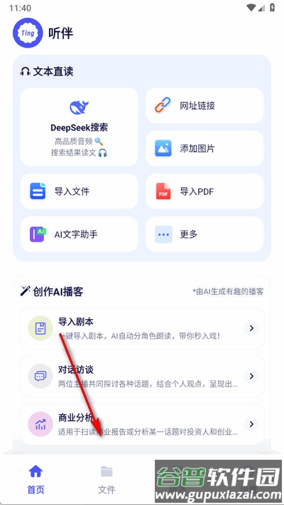 1、启动软件进入主界面,点击底部导航栏中的文件选项。