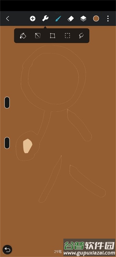 5、选好颜色后,点击设置图标内的颜料桶工具,即可对选定区域进行颜色填充。