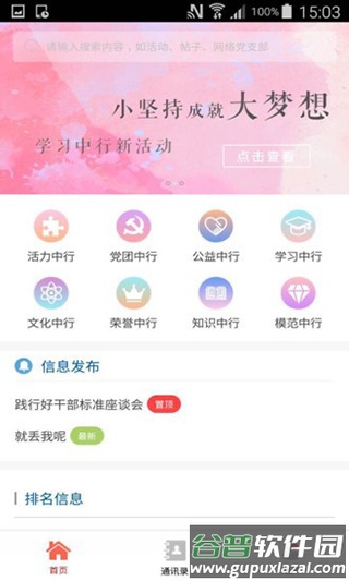 3、进入首页后,可轻松获取最新资讯与热门信息,查看各类排名,快速查阅活动、公益、学习、文化及党团等内容;