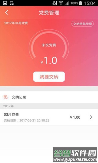 5、最后如需查阅或缴纳党费,点击首页中的党团按钮,进入党费管理页面,即可查看缴纳记录并完成一键缴纳。