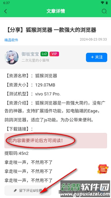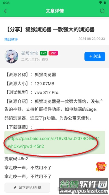 4. 评论之后,下载链接就会显示出来,将其复制到浏览器中即可下载。