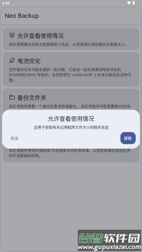 4、允许软件查看使用情况,此权限用于收集统计信息,以准确计算应用的缓存及数据大小。
