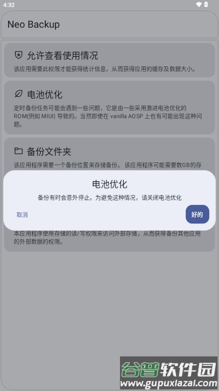 5、注意电池优化设置,部分系统如MIUI或原生安卓的激进电池优化策略可能会影响定时备份任务的执行。