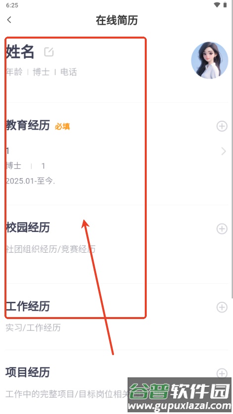 3、进入编辑页面,即可对各项个人信息进行修改与更新。