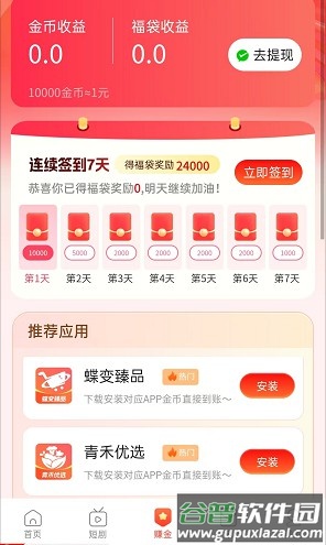 需要留意的是,平台内存在两种主要奖励,均支持一元起提;福袋奖励主要通过转金板块获取,例如签到任务需下载指定应用才能完成;常规的红包雨奖励则会直接发放至福袋中。
