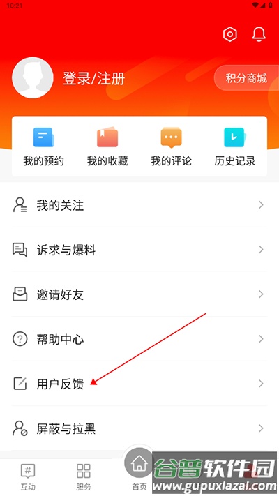 2、进入个人页面后,找到并点击“意见反馈”选项;