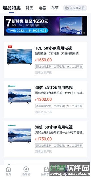 4、已是酒店从业者的用户,可在商城页采购各类酒店设备用品。