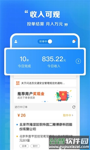 表现优异的闪送员可获得订单全部收入;其他闪送员平台会收取20%作为服务佣金;每日完成5单左右,收入可超过200元,接单量增加则收入同步提升;