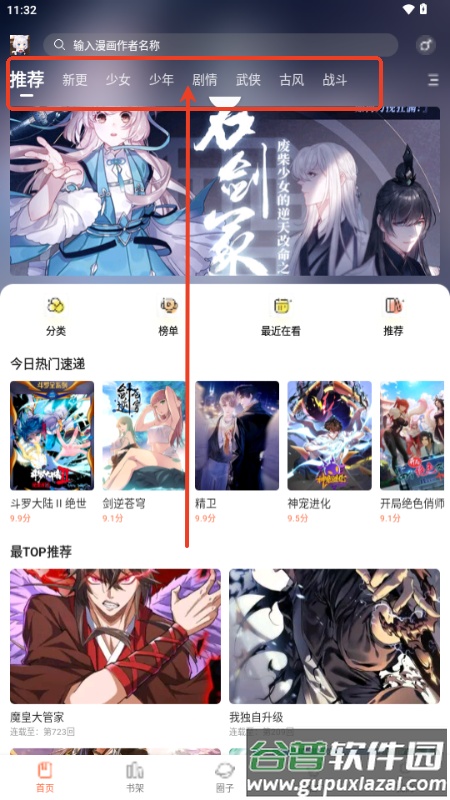1、在应用主页浏览并选择感兴趣的漫画分类;