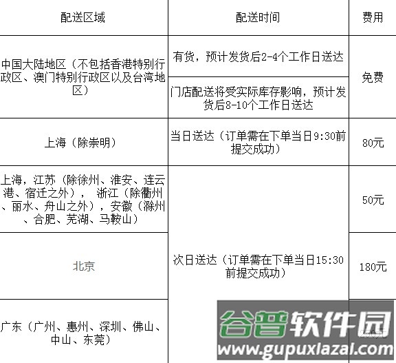 A:不同地区与时段提供多样化配送选择,具体选项及费用请于结算页面查看,或参考官网公布的物流配送表。