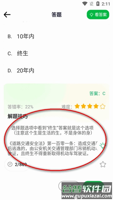 3. 技巧说明中会标注题目的难易程度,方便用户针对性记忆。
