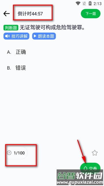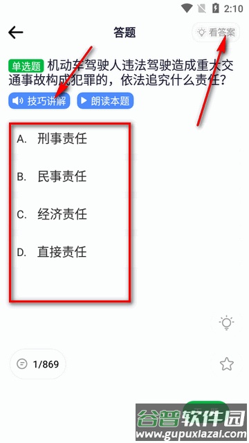 2. 进入答题界面直接开始练习,可以随时查看答案与技巧讲解。