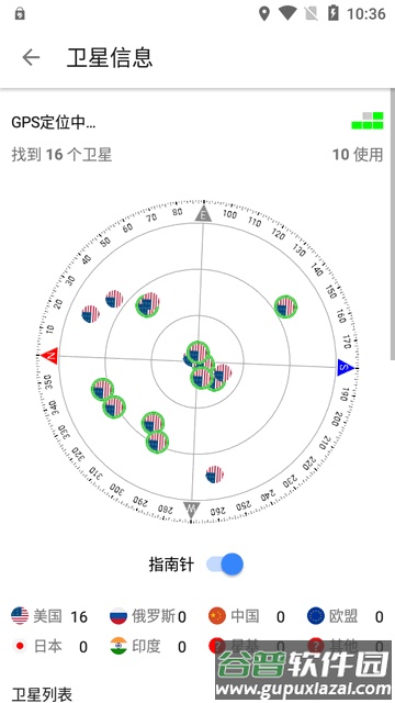 4、进入GPS卫星信息界面,可查看定位卫星的数量、实时位置及可用状态。