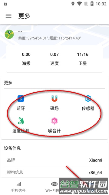 借助手机硬件检测各类信号与设备信息,主要提供以下功能: