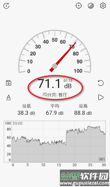 3、系统会根据当前环境实时测算并显示分贝数值。