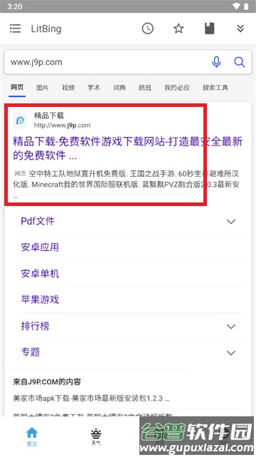 3、点击搜索按钮即可直接访问结果页面。