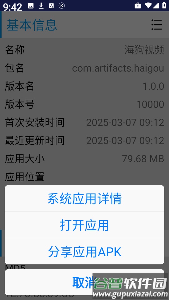 6. 在弹出菜单中选择“分享应用apk”功能,即可通过其他应用发送APK文件。