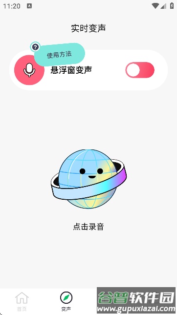 4、应用支持实时变声功能,界面中附有详细的使用指引,可按照步骤进行设置。