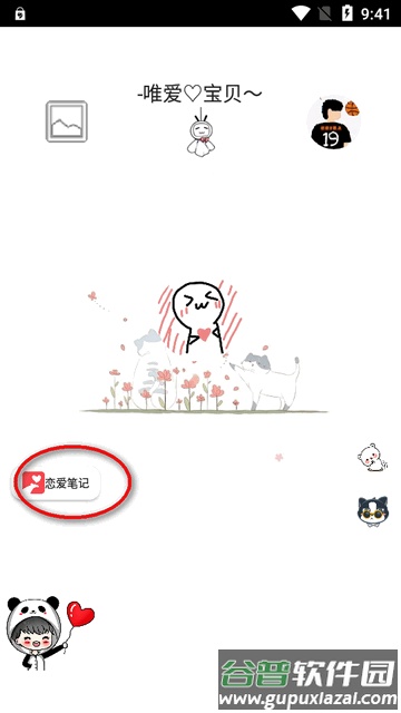 3、进入主界面后,点击“恋爱笔记”板块,里面收录了诸多表达爱意的句子。