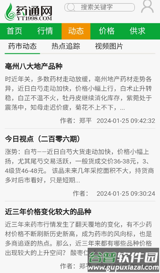 3、打开动态栏目,可以阅读药材市场的最新动向与行业热点新闻;