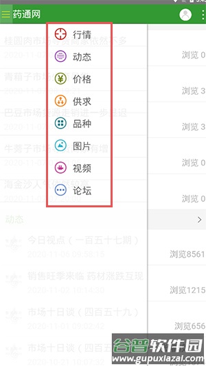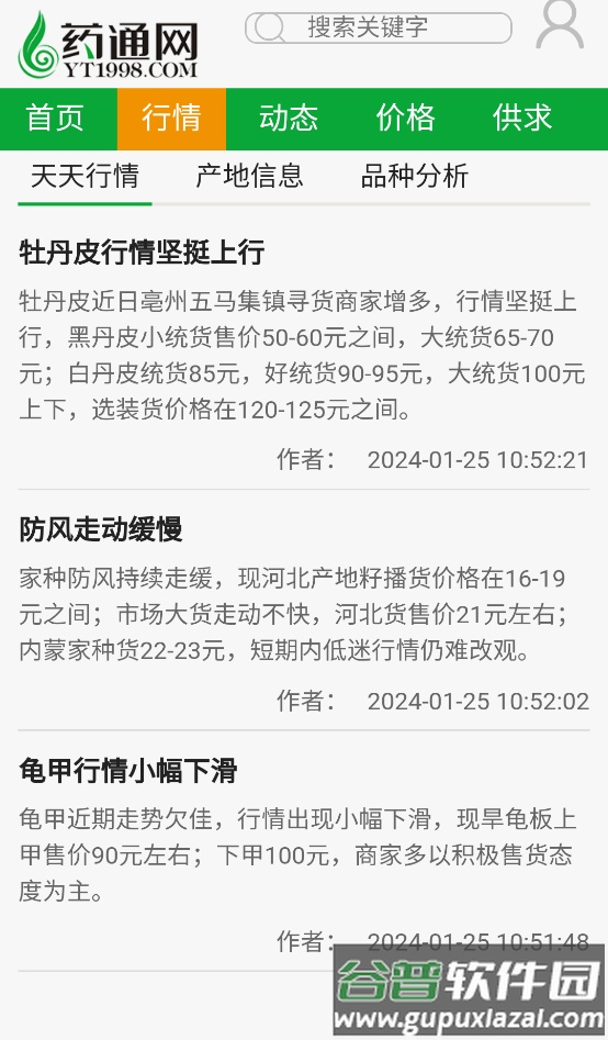 1、从本站下载并安装药通网app,打开后可见行情、动态、价格、供求及论坛等主要栏目;
