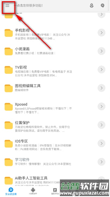 1、启动软件,点击界面左上角的三条横线图标。